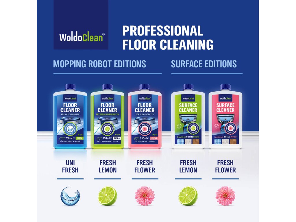 Próbáld ki magas koncentrációjú padlótisztítónkat, amelyet kifejezetten robotikus felmosókhoz fejlesztettünk. Összetételének köszönhetően hatékonyan eltávolítja a szennyeződéseket, zsírt, és csíkmentes, ragyogó felületet hagy maga után. Ráadásul kellemes illata felfrissíti az egész lakást.