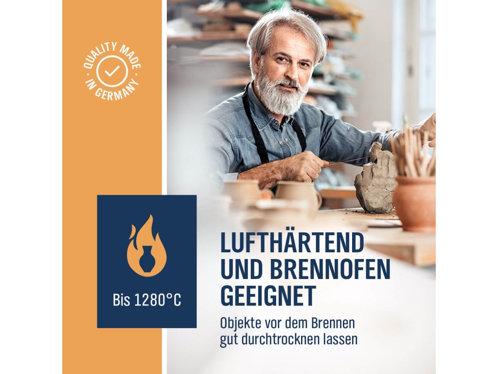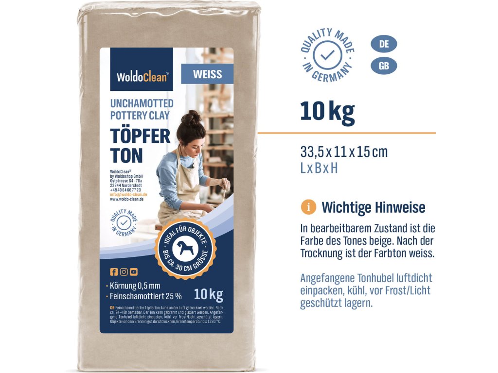 Ez a fehér fazekas agyag kiváló plaszticitással rendelkezik, 25% samottal van gazdagítva, és ideális akár 50 cm-es tárgyak készítéséhez. Semleges színe miatt tökéletes mázazáshoz, festéshez és további díszítéshez.