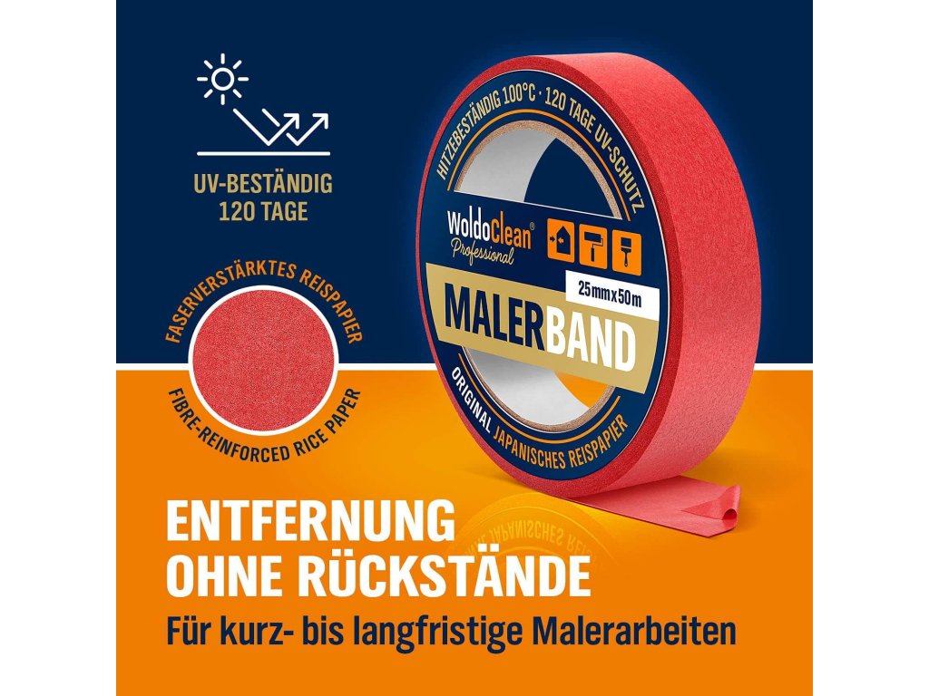 A szalag akár 100 °C-ig hőálló, így tökéletes választás beltéri és kültéri használatra egyaránt. Vékony, mégis erős rizspapír anyaga lehetővé teszi a precíz munkát festék aláfolyás nélkül – éles, professzionális eredmény minden rétegben.