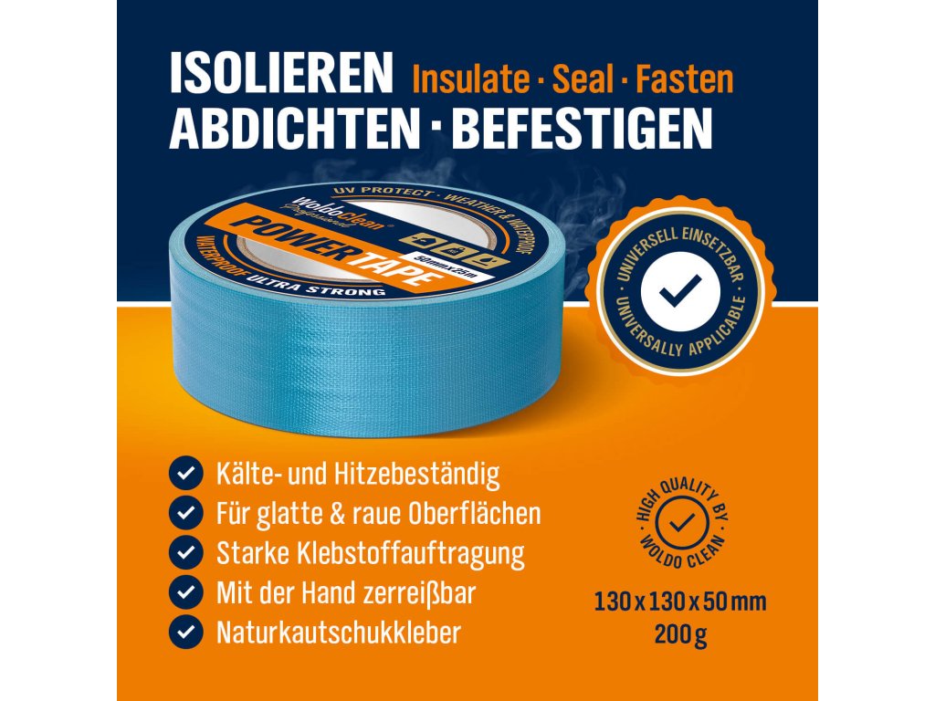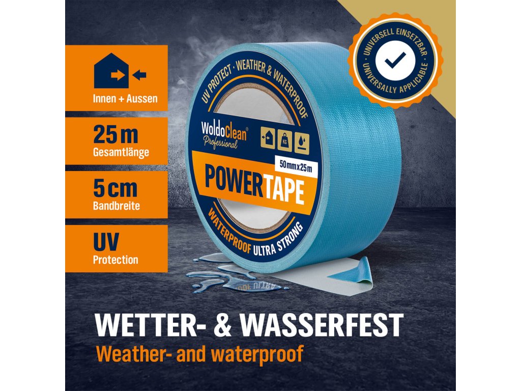 Power Tape – rendkívül ellenálló, univerzális ragasztószalag, amely beltéri és kültéri használatra egyaránt alkalmas. Ideális ideiglenes vagy tartós rögzítéshez, és szálas erősítésének köszönhetően tökéletes professzionális felhasználásra is.