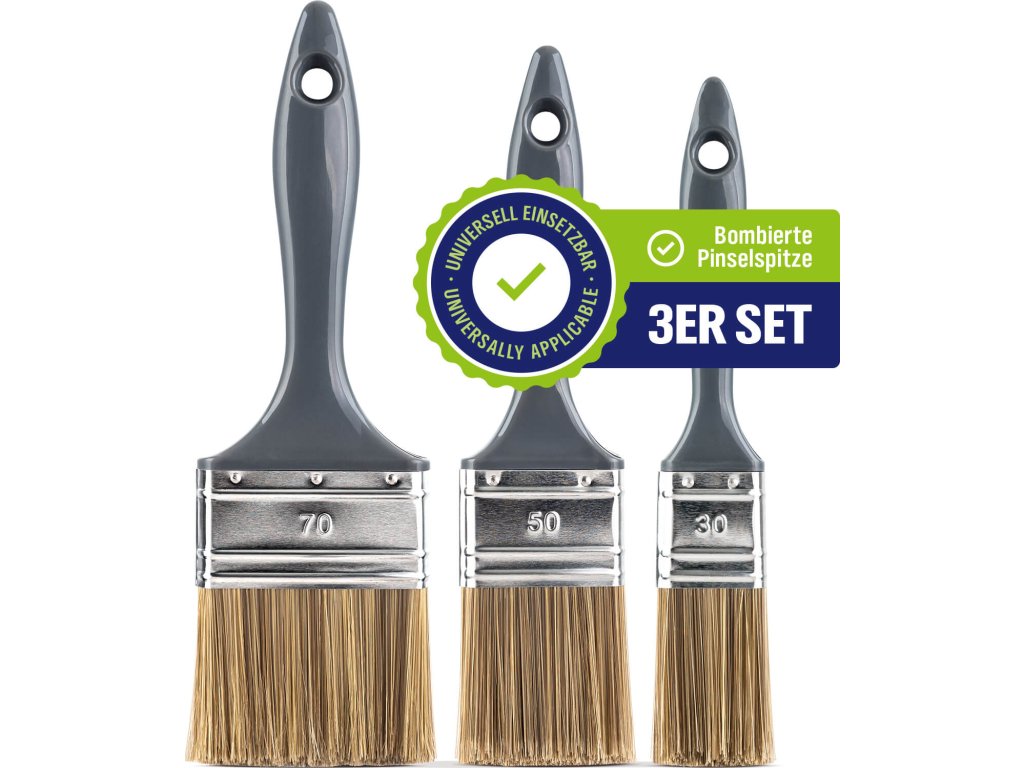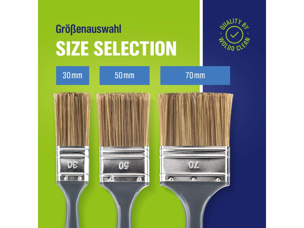 3 különböző méret (30, 50 és 70 mm) lehetővé teszi a precíz és egyenletes máz- vagy olajfelvitelt bármilyen munkánál. Ideális választás bútorok, ajtók, keretek vagy faburkolatok festéséhez.
