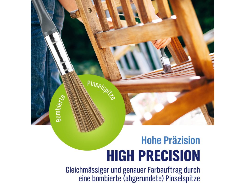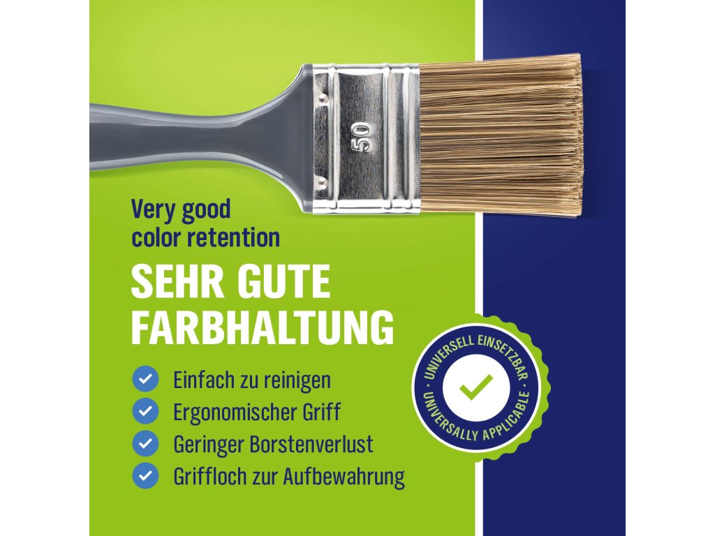 Alkalmas beltéri és kültéri használatra is. A lekerekített sörtevégek biztosítják a csíkmentes, tökéletes eloszlatást. Az ecsetek strapabírók, nem hullanak és könnyen tisztíthatók.