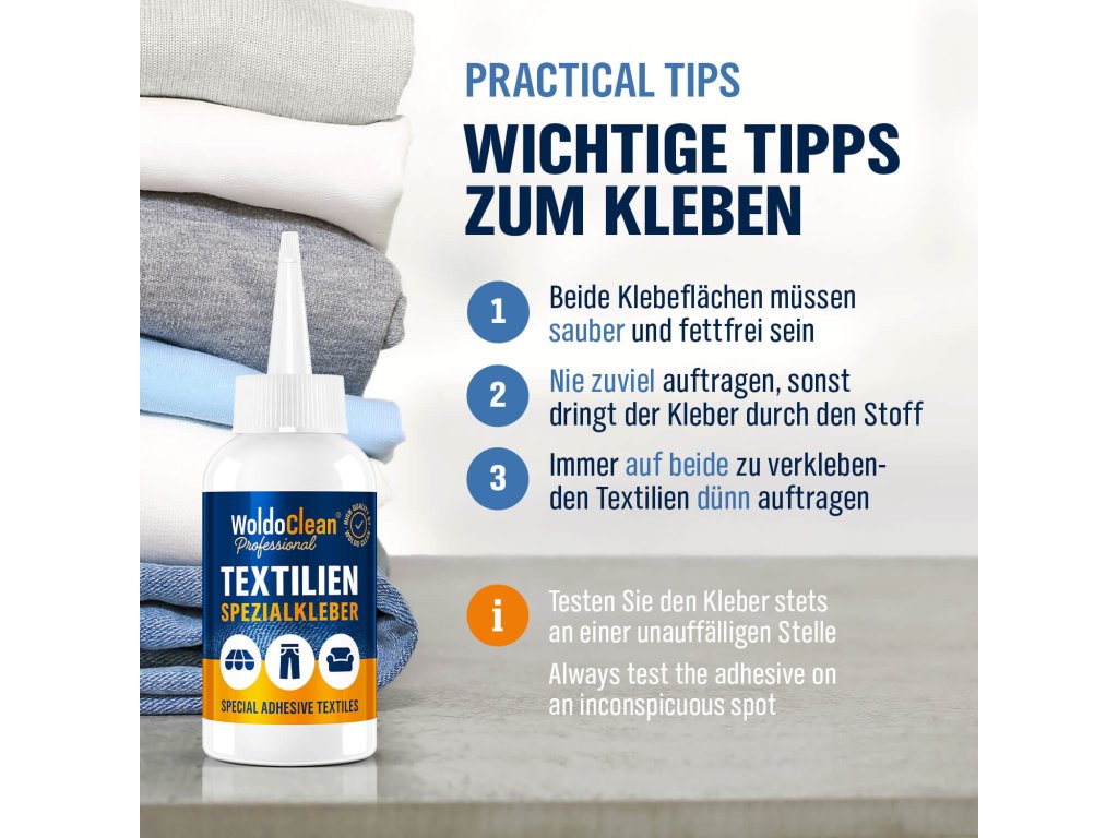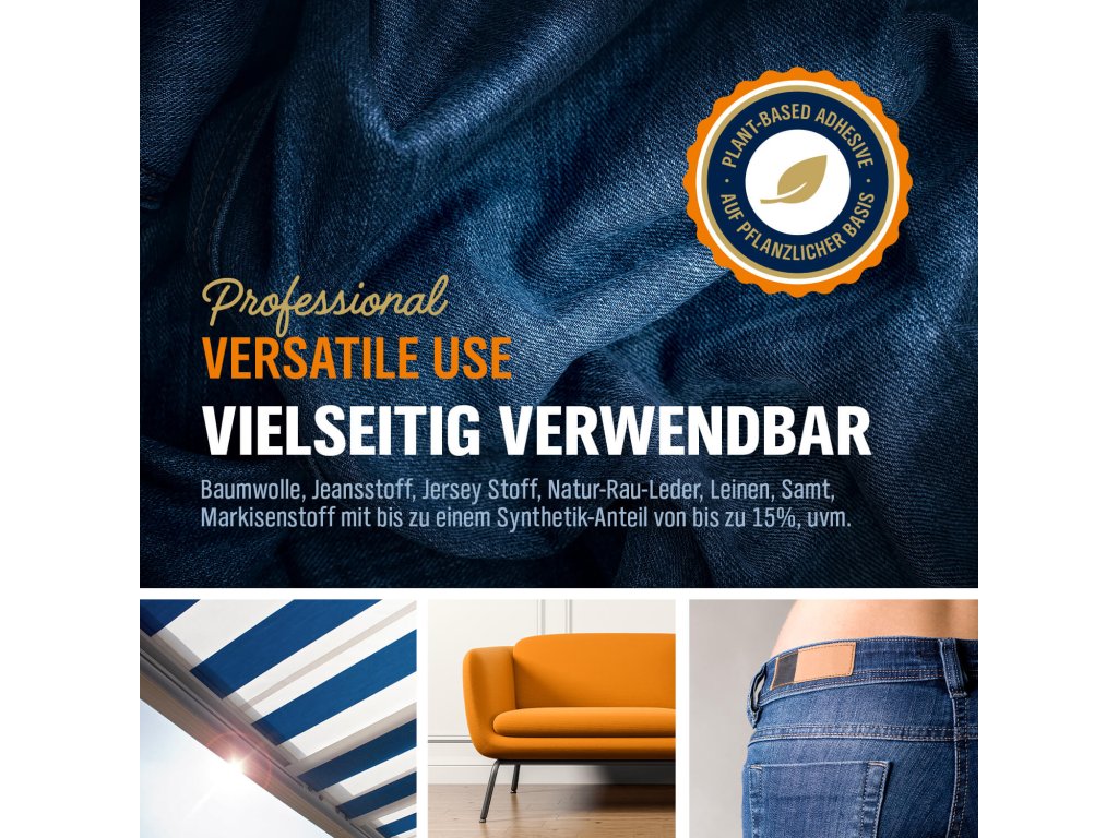 Javasoljuk, hogy a ragasztót előzetesen tesztelje egy kevésbé látható helyen, különösen finomabb anyagok esetén. A felületeknek tisztának, száraznak és zsírmentesnek kell lenniük.