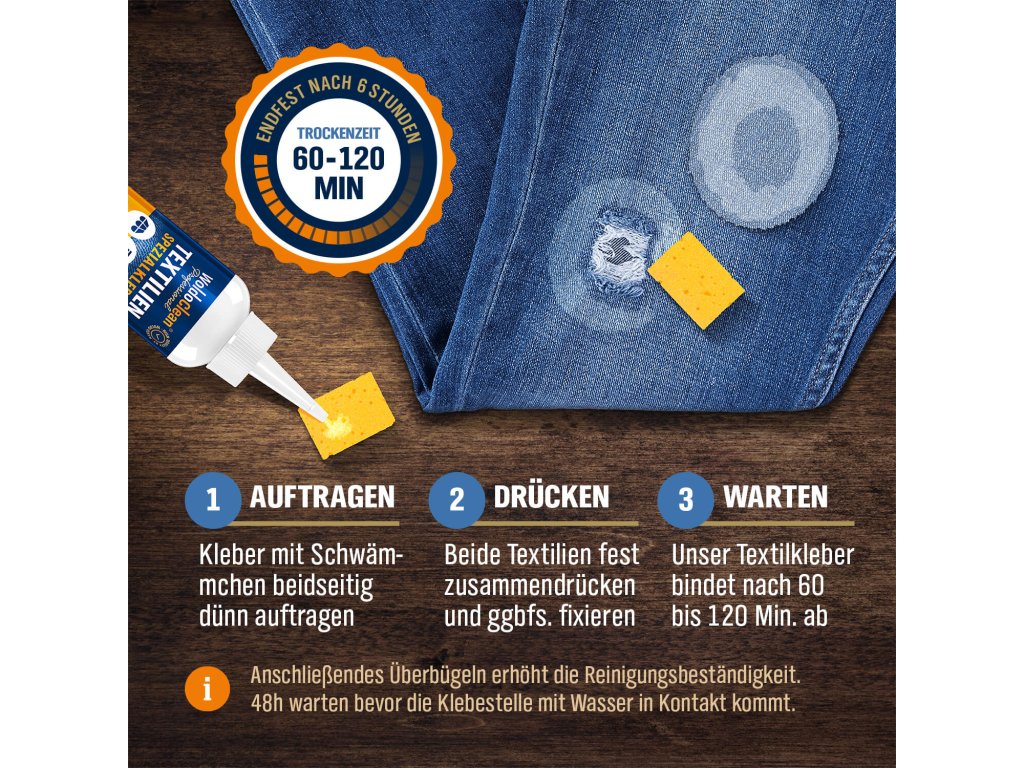 - A jobb mosásállóság érdekében vasalja át a ragasztott részt egy védőtextílián keresztül.