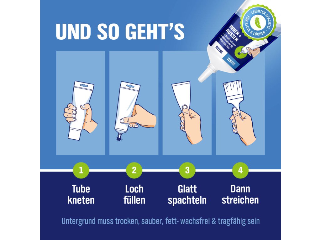 - Alkalmazza a terméket az adagoló hegy segítségével közvetlenül a lyukba vagy repedésbe, és simítsa el egy spatulával.